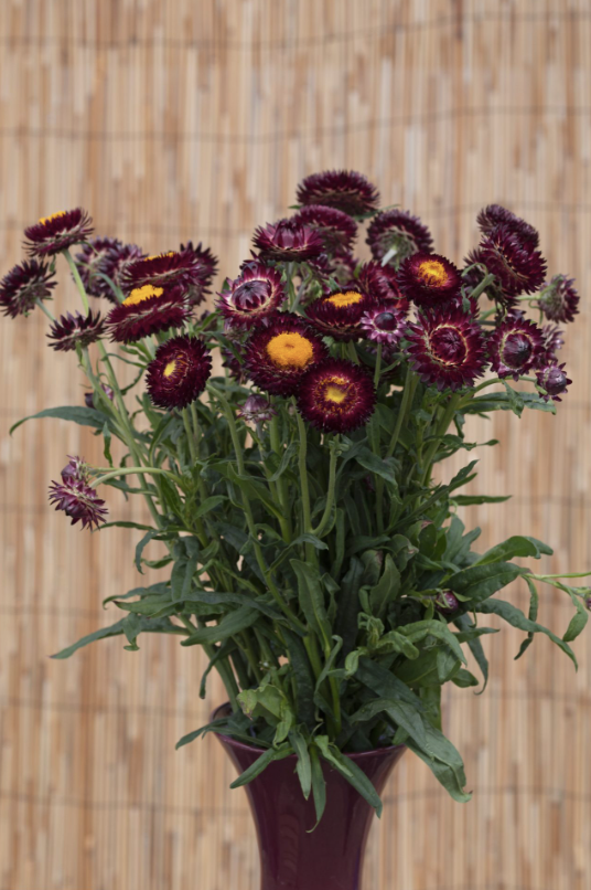 King Size Red är en storblommig variant av den klassiska evighetsblomman, med intensivt mörkröda till maroonfärgade blommor som verkligen sticker ut. De dubbla, pappriga blommorna är perfekta för både färska buketter och torkade arrangemang.