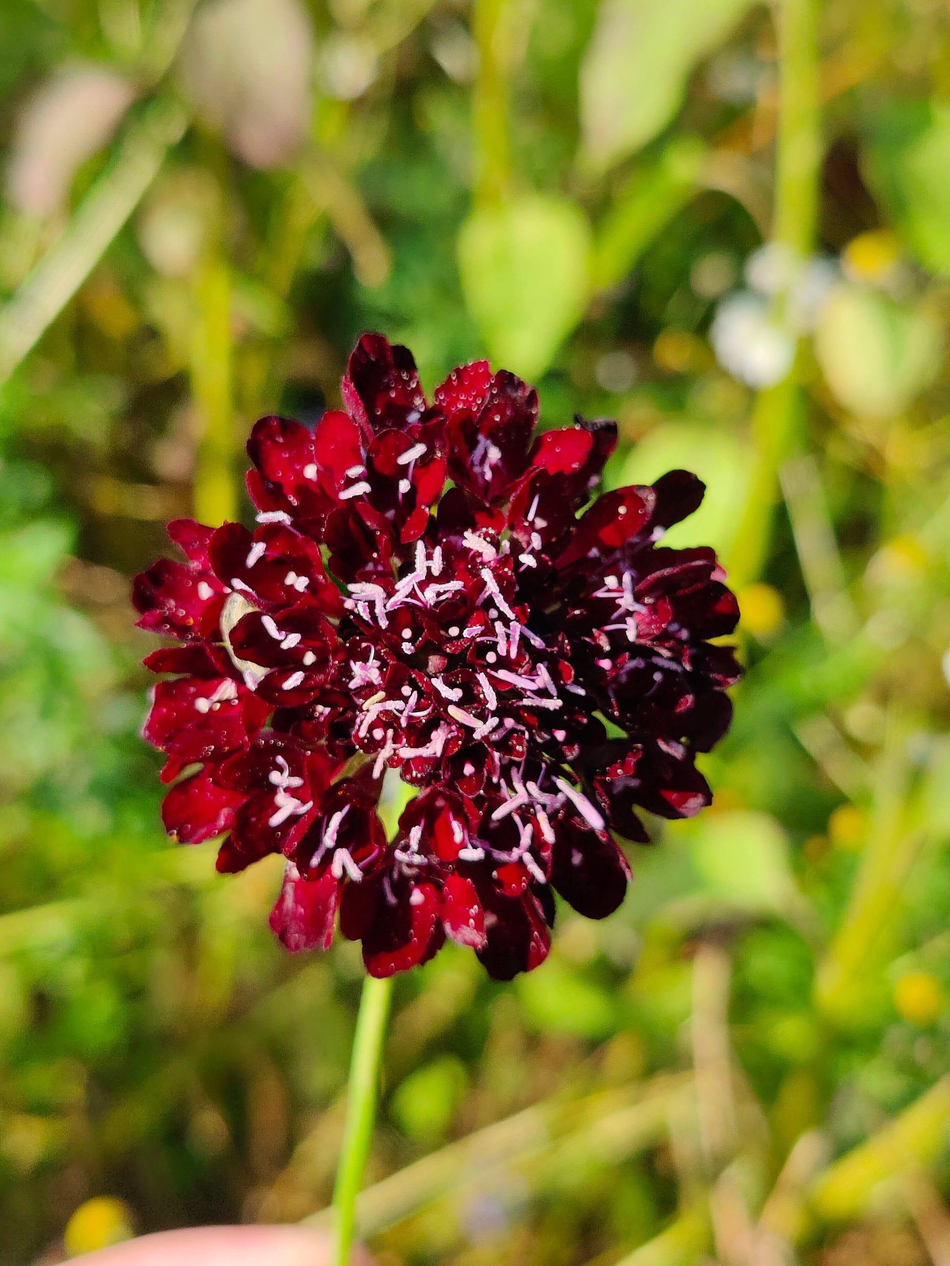 Black Knight är en dramatisk och älskad sort av scabiosa – med sammetslena, nästan svarta blommor som ger en mystisk och elegant känsla till både rabatter och buketter. De mörkt burgundyfärgade blommorna med vita ståndare sitter på långa, gracila stjälkar och har en söt honungsdoft som lockar både pollinatörer och florister